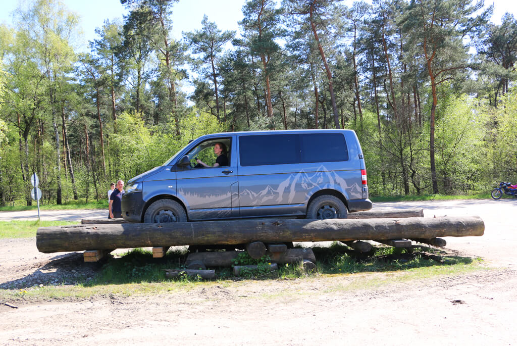 Am Vormittag galt es beispielsweise steile Auffahrten mit spitzen Kuppen zu überfahren oder Schrägfahrten am Hang zu üben, die einem selbst als kritisch erschienen. Am Nachmittag konnte man das Erlernte bei weiteren Manövern im Gelände umsetzen: lange Hangauffahrten mit Spurrinnen oder die Vorbereitung und das richtige Durchfahren von Wasserlöchern.