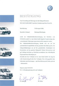 Die Unbedenklichkeitsbescheinigung (UBB) von Volkswagen Nutzfahrzeuge bestätigt, dass seitens Volkswagen Nutzfahrzeuge, bei sachgerechtem Einbau, keine Bedenken gegen diesen Umbau bestehen.