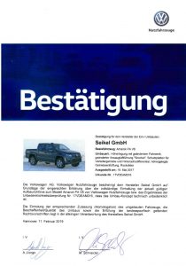Die Unbedenklichkeitsbescheinigung (UBB) von Volkswagen Nutzfahrzeuge bestätigt, dass seitens Volkswagen Nutzfahrzeuge, bei sachgerechtem Einbau, keine Bedenken gegen diesen Umbau bestehen.