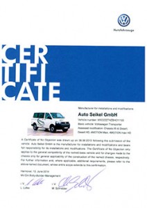 Le certificat d’innocuité de Volkswagen Véhicules Utilitaires confirme qu’en cas de montage conforme, Volkswagen Véhicules Utilitaires ne peut formuler aucune objection à l’encontre de ces transformations.