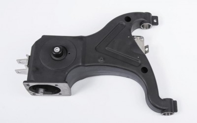 Rear axle swing arm, left, 16” without rubber/metal bearings