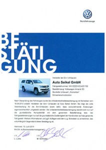 Die Unbedenklichkeitsbescheinigung (UBB) von Volkswagen Nutzfahrzeuge bestätigt, dass seitens Volkswagen Nutzfahrzeuge, bei sachgerechtem Einbau, keine Bedenken gegen diesen Umbau bestehen.