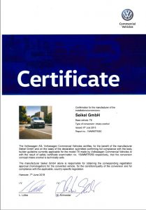 Despite the existence of a positive CNO assessment by Volkswagen Commercial Vehicles, Seikel UK remains solely responsible for the roadworthiness, operational safety and endurance of its fitted parts and conversions as well as for the complete converted vehicle, inasmuch as the vehicle properties are affected by the conversion.