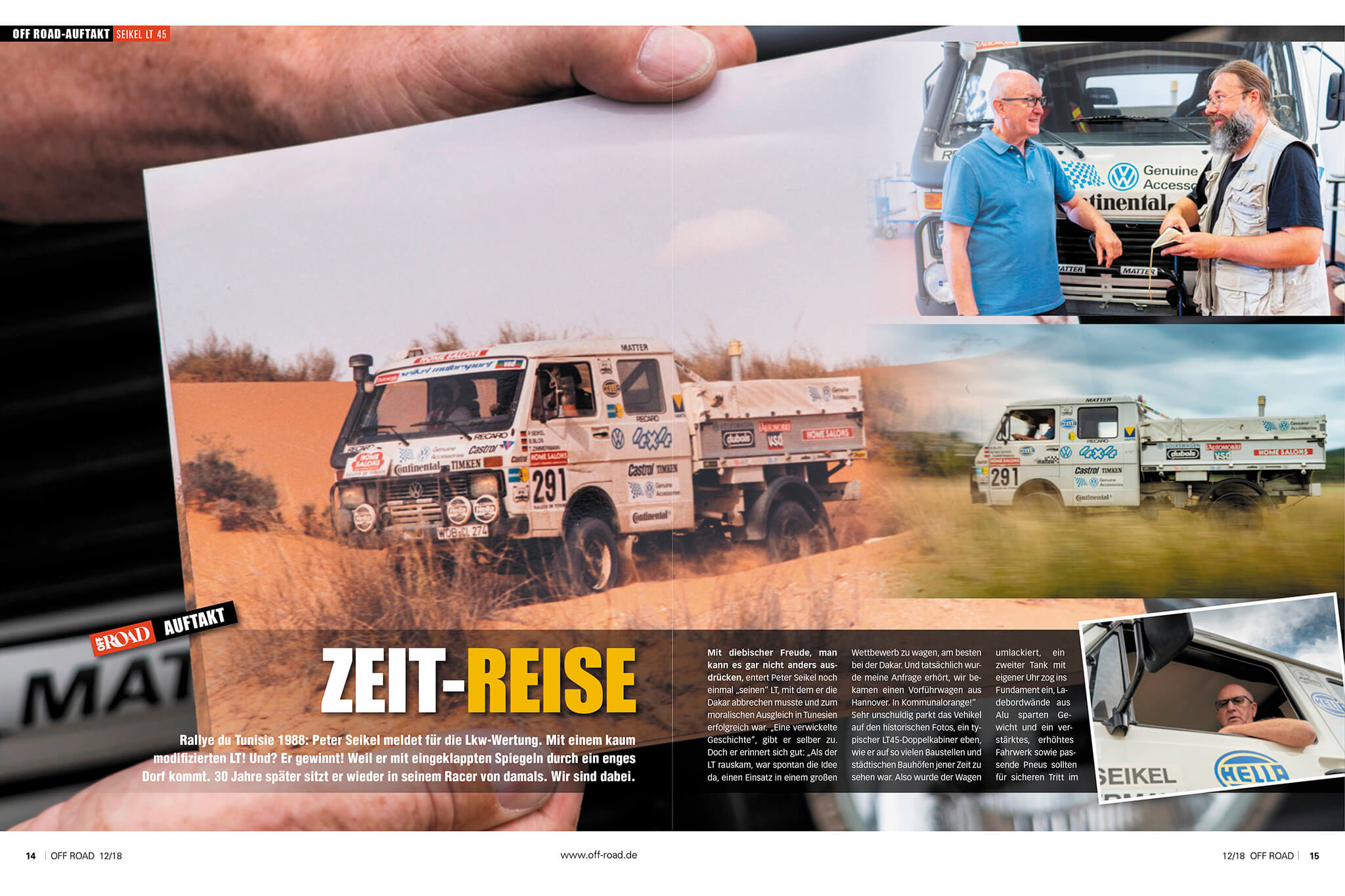 Als der LT herauskam, war spontan die Idee da, einen Einsatz in einem großen Wettbewerb zu wagen. Mit einem von Peter Seikel wüsten- und renntauglich umgebauten LT45-Dopplekabiner ging es dann 1988 los …